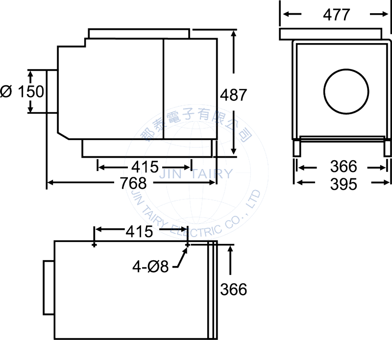 型號 電壓 頻率 馬力 轉速 最大風量 最大靜壓 噪音 進風口 重量